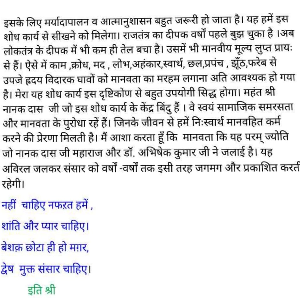 मेरा यह शोध कार्य मानवता केई सेवा के लिए समर्पित है। धर्म सर्वोच्च है।उसका पालन करें।
