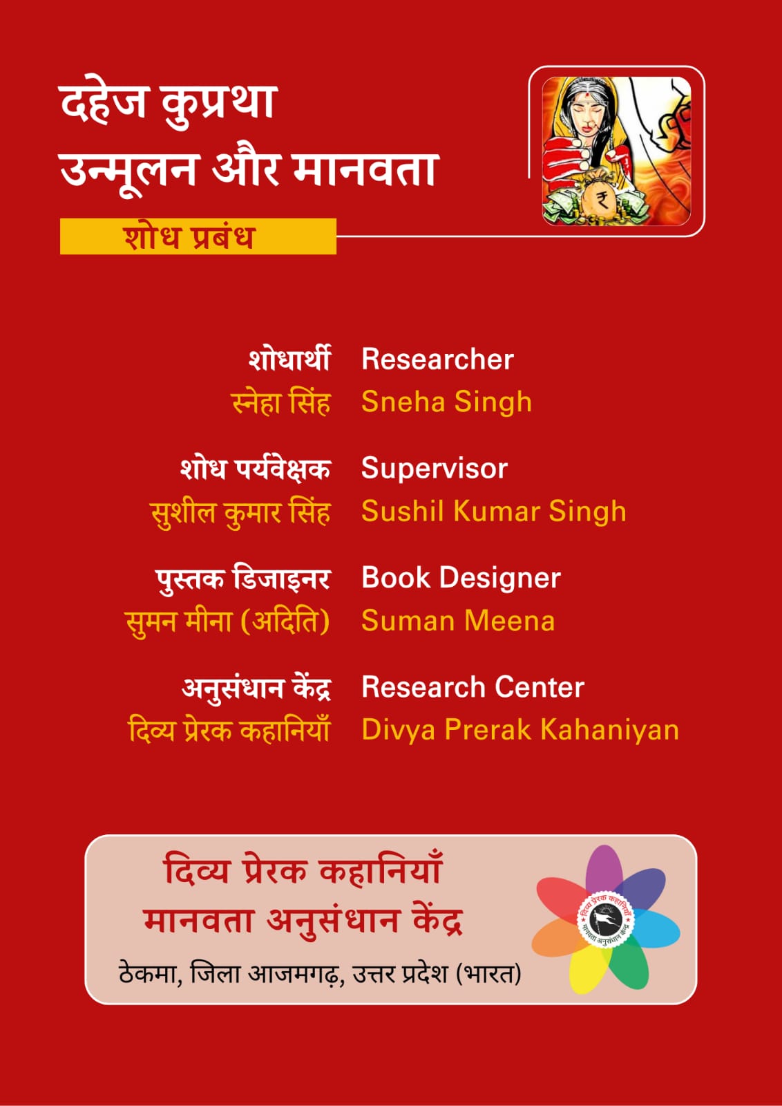 | अति संक्षेप शोध सारांश | दहेज़ प्रथा समाज के हर वर्ग के लिए एक अभिशाप है| इसका उन्मूलन कर जड़ से उखाड़ फेकना आवश्यक है| इससे ही मानवता का पुंज प्रखर रूप लेगा| |